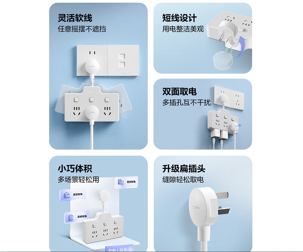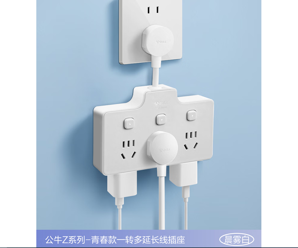 公牛/BULL GN-Z97333 插座 柔性转换插头/品字形一转六插座/无线转换/电源转换器 6位分控开关 晨雾白