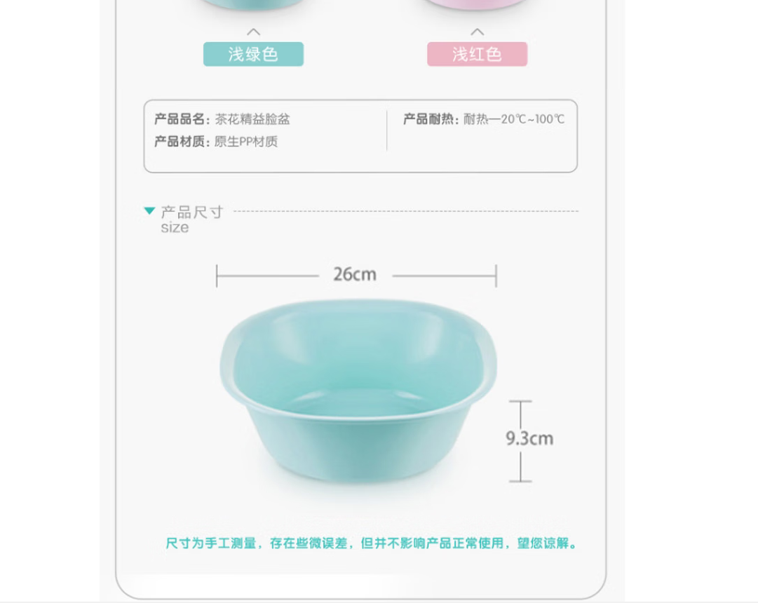 茶花/CHAHUA 100028985164塑料制品 塑料盆 小号抗菌洗脸盆方形洗脚洗衣服盆 粉色