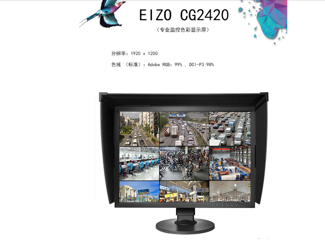 艺卓/EIZO CG2420 液晶显示器 广色域 DCI-P3 内置传感器 视频编辑 印刷调色 监控图像显示屏24.1英寸黑色