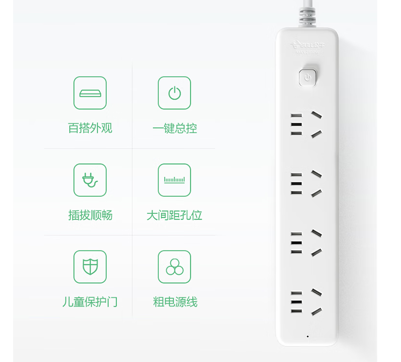 公牛/BULL GN-B2040 插座 新国标插座/插线板/插排/排插/接线板/拖线板 4位总控开关全长2米