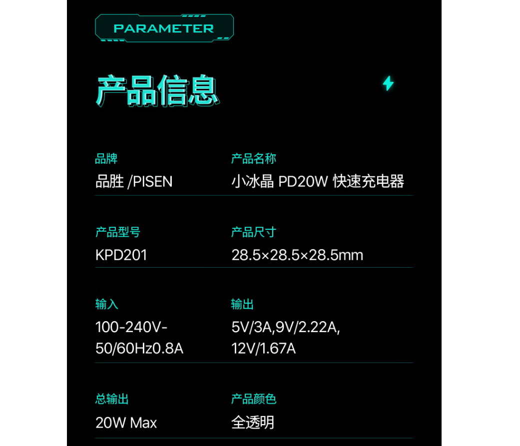 品胜/PISEN KPD201 手机充电器 苹果充电器PD20W 苹果14快充电头Type-C 通用iPhone14plus/13ProMax/iPad华为小米手机平板插头