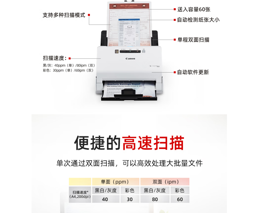 佳能/CANON R40 扫描仪 彩色文档馈纸式自动连续双面高速扫描仪 批量扫描 文档合同发票扫描仪