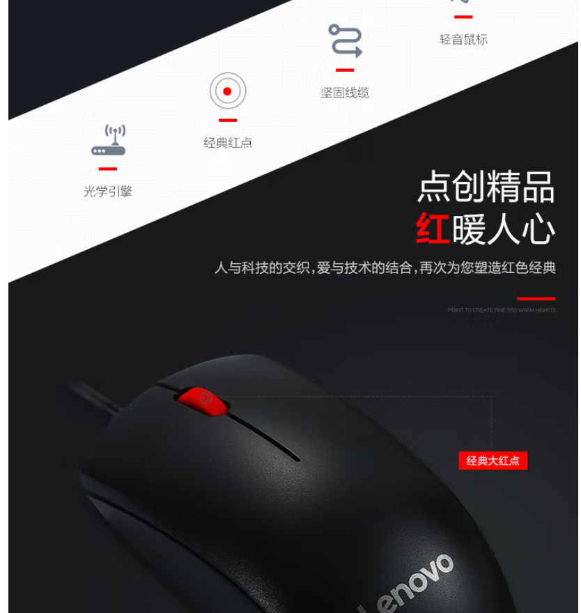 联想/LENOVO MLX220L 鼠标 有线轻音鼠标 办公鼠标 有线轻音鼠标 台式机鼠标