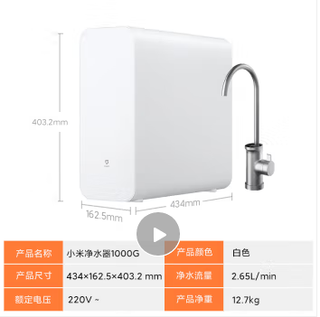 小米/MI MR1082 饮水器 米家小米净水器家用净水机1000G 新鲜无陈水低噪省水 5年RO反渗透 厨下直饮净水器 2.65L/分