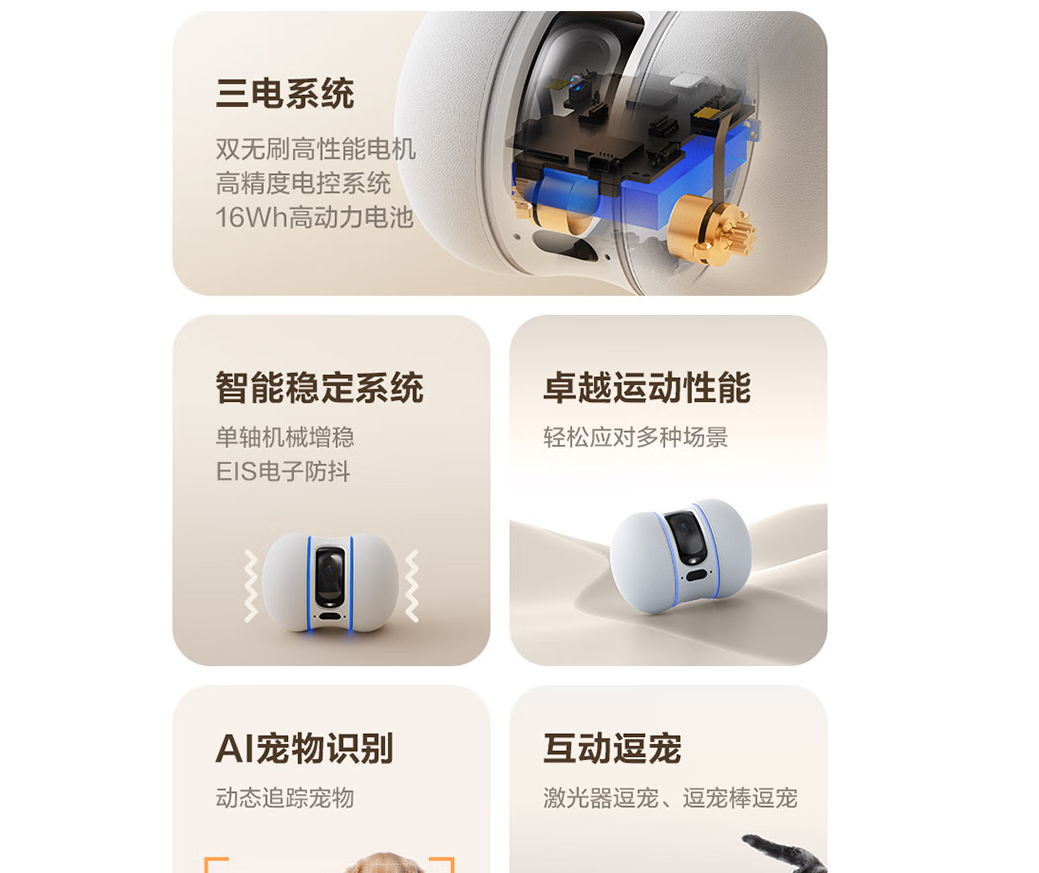 萤石/EZVIZ TAMO42 监控摄像机 TAMO无线宠物看护摄像头 家用无线网络远程操控 AI宠物识别 互动逗宠 全屋移动智能机器人