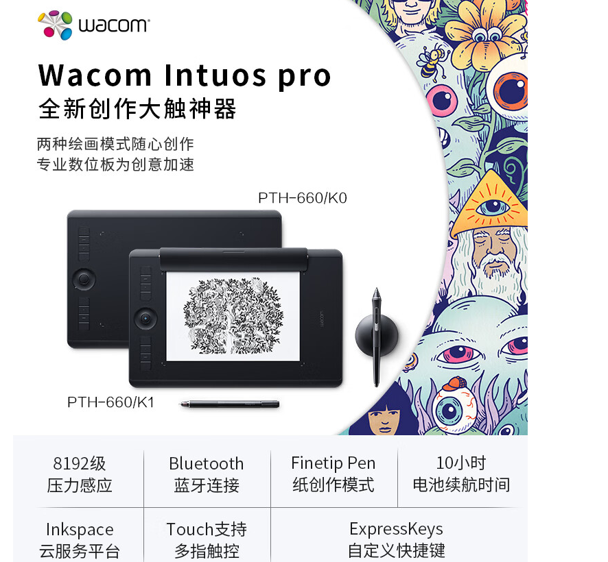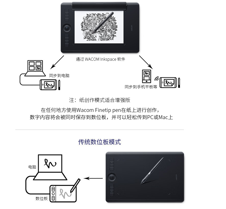 和冠/Wacom PTH-860 手写式输入设备 位板 手绘板 手写板 电子绘画板 网课电脑绘图板 支持无线蓝牙连接 PTH-860/K0