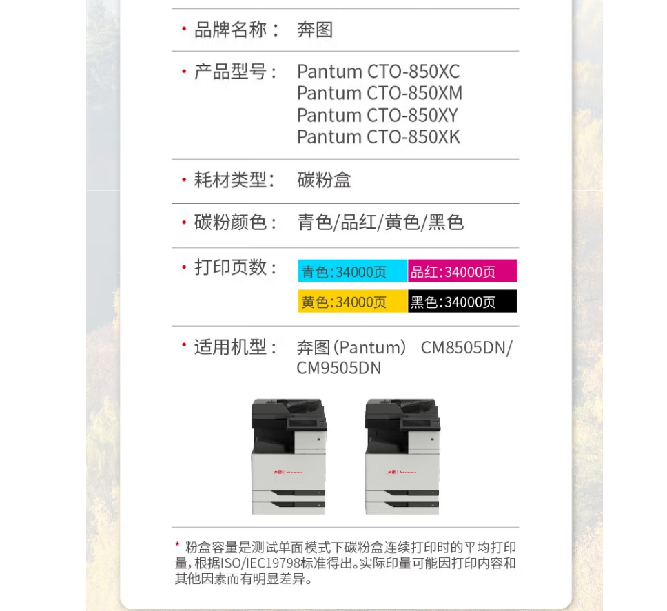 奔图/PANTUM CTO-850X粉盒 碳粉盒CP9502DN/CM8506DN/CM8505DN/CM9505DN CTO-850HY 黄色粉盒 11500页