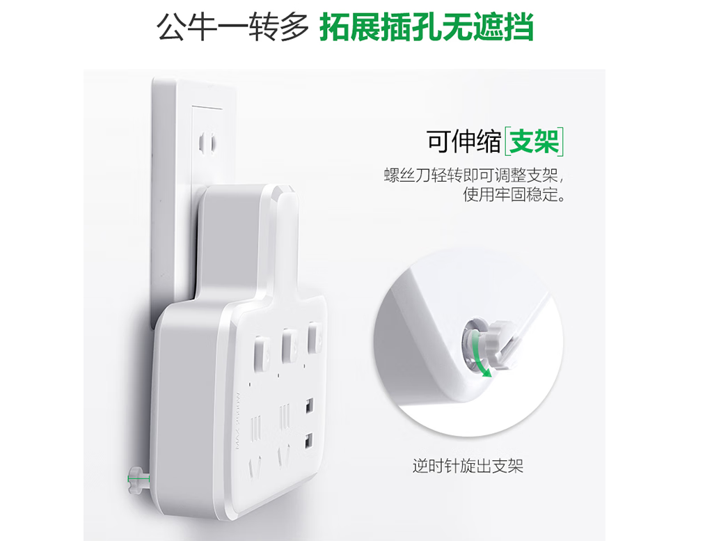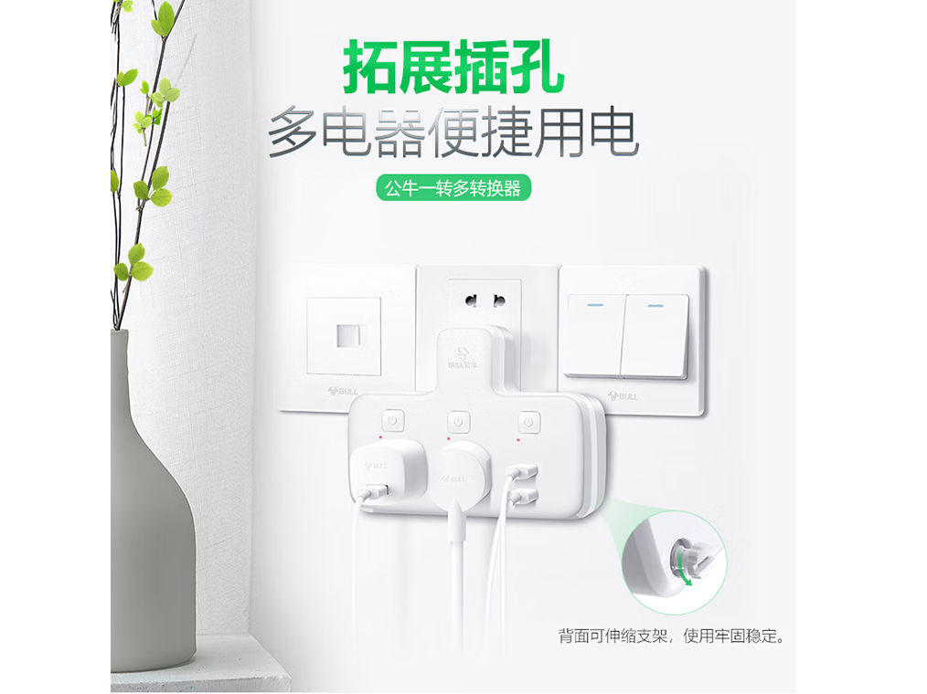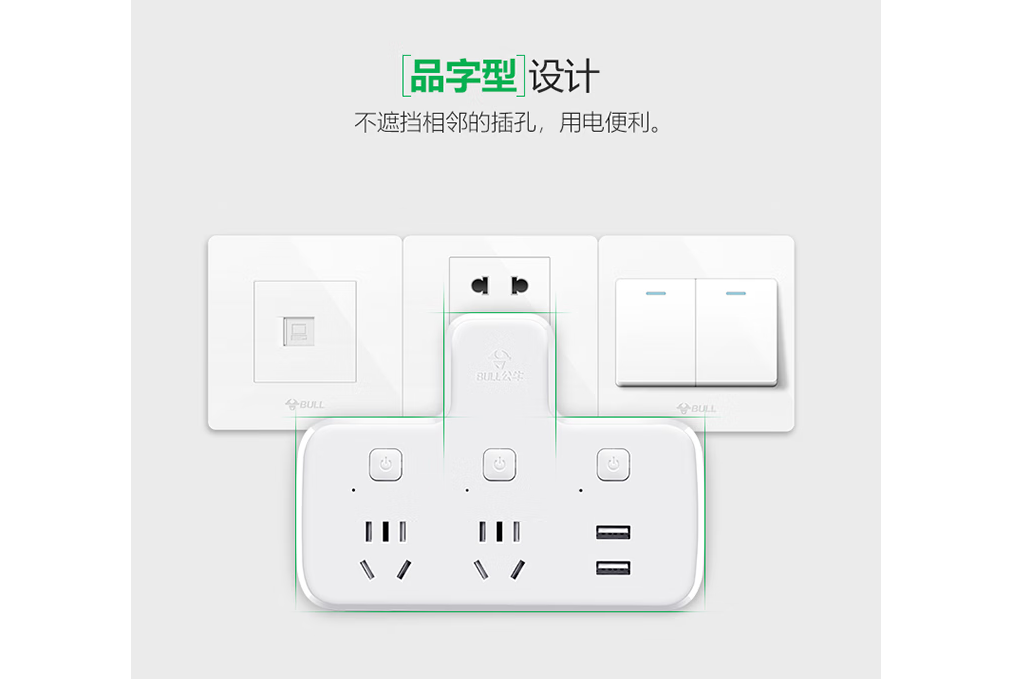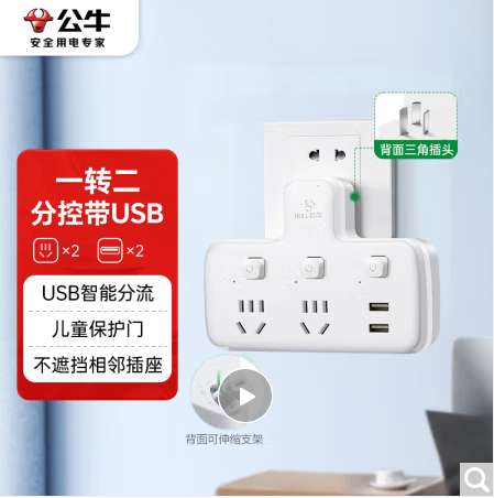 公牛/BULL GN-96023U 插座 USB转换插头/品字形一转二带USB /转换插座 适用于卧室、厨房 2位分控带2USB口