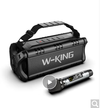 维尔晶/W-King D8 音箱 D8斜挎式便携低音炮家庭KTV影院户外登山露营车载蓝牙音箱50W额定功率支持双麦嗨唱可选配音箱包 黑色标配单麦