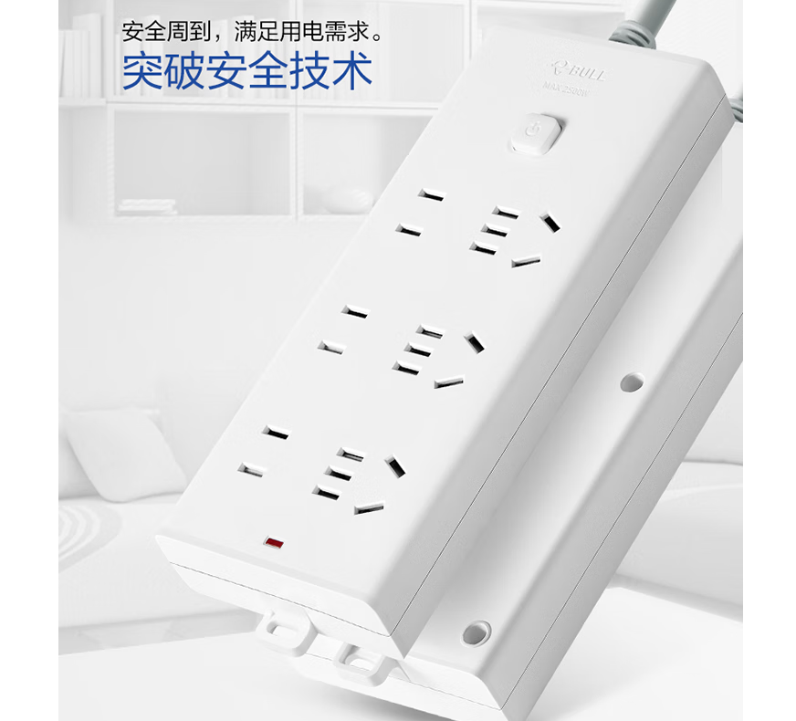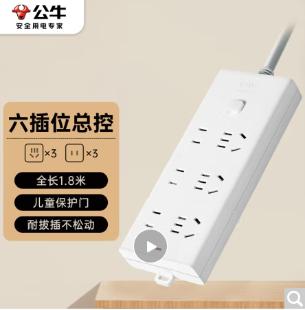 公牛/BULL GN-B9330 插座 新国标插座/插线板/插排/排插/接线板/拖线板 6位总控全长1.8米