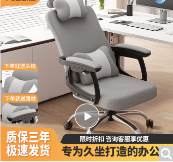 国景 YPHW13 办公椅 办公椅子 电脑椅 电脑椅家用办公椅子 久坐午休可躺电竞椅人体工学舒适老板座椅 灰色网布(钢制脚)