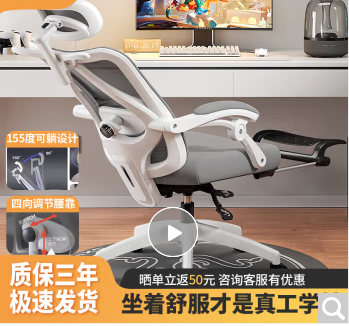 国景 YPHW09 办公椅 办公椅子 电脑椅 人体工学椅子电脑椅家用久坐舒适电竞椅可躺靠背学生学习办公座椅 白灰-搁脚-乳胶坐垫-3级气杆
