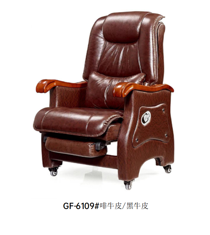 国景6109# 办公椅 老板椅 电脑椅 主管椅 背椅 皮椅 靠背升降座椅咖啡牛皮 黑色牛皮