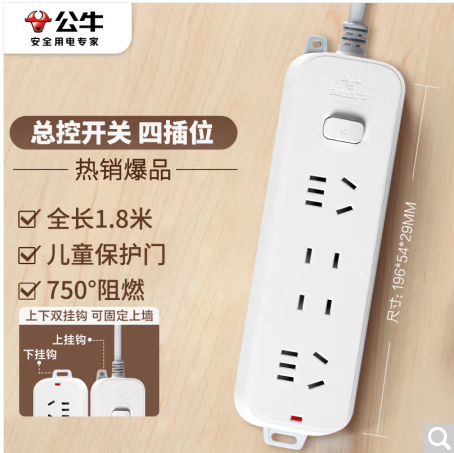 公牛/BULL GN-B3220 插座 插座/插线板/插排/排插/接线板/拖线板 4位总控开关全长1.8米