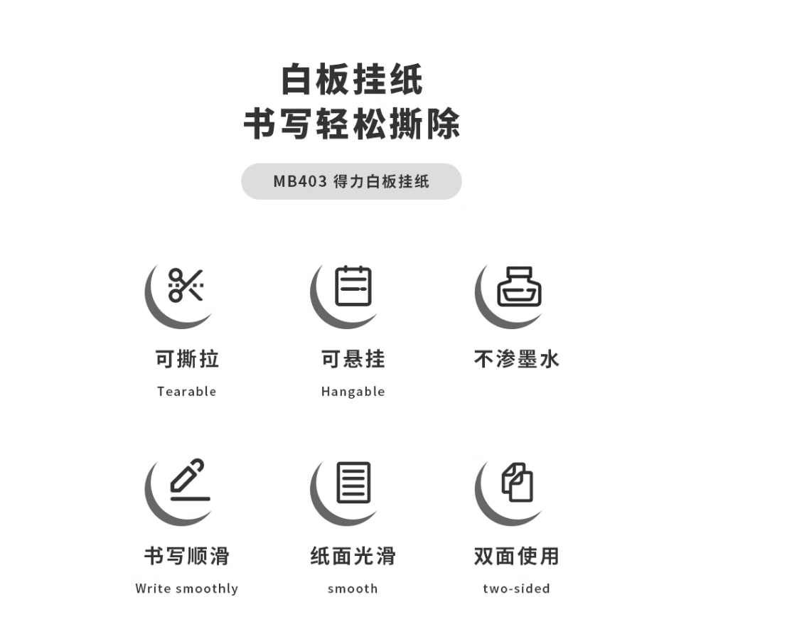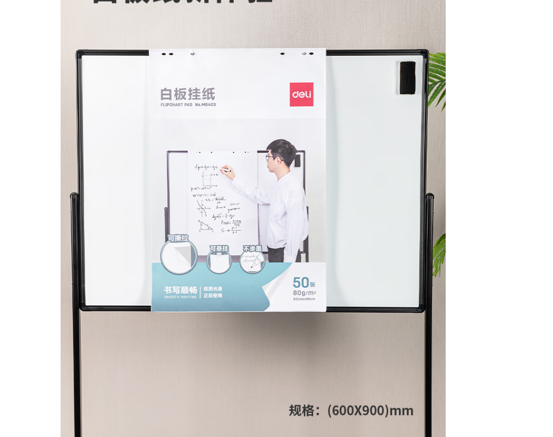 得力/deli MB403喷墨/相片纸/卡纸 白板配件白板纸A160*90cm80g/50张白板纸广告会议培训教学挂纸白板笔水溶性蜡笔磁钉可用MB403