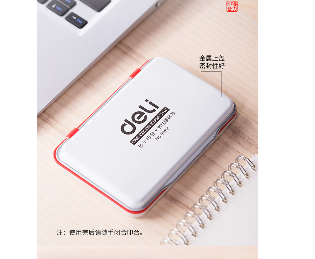 得力/deli 9893印台/印泥/印油 143*87mm金属方形大号财务会计秒干印台印泥 办公用品 红色9893