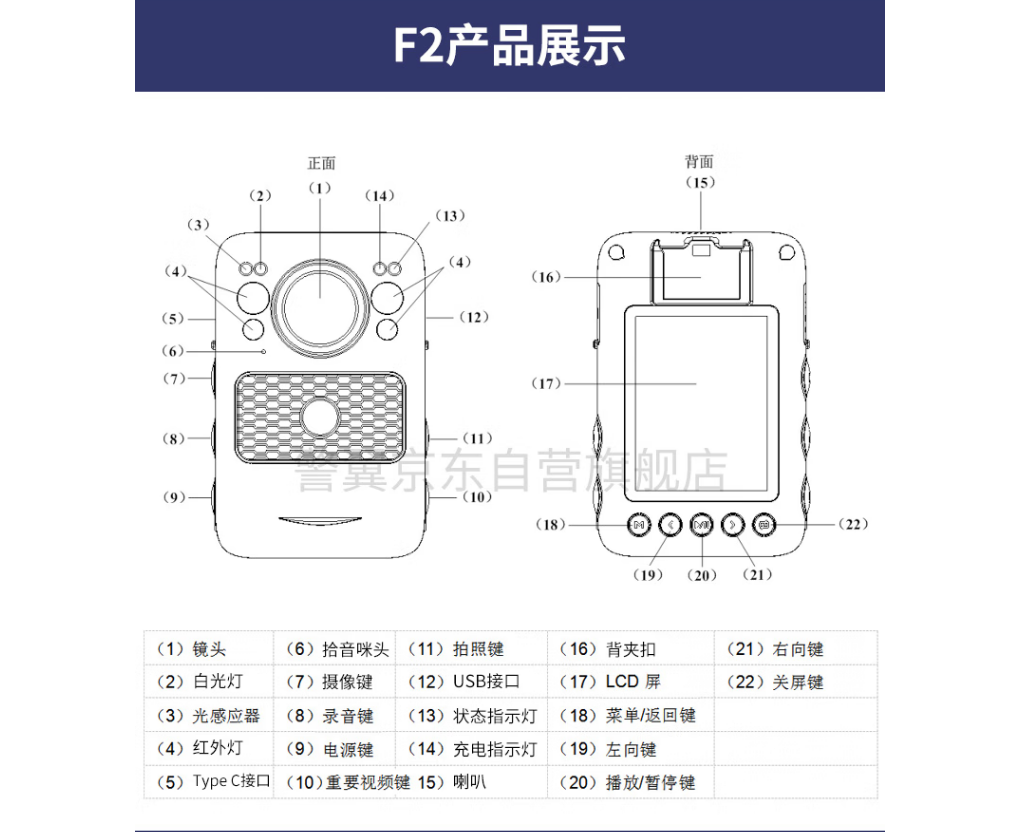警翼 F2 通用无线电通信设备 F2执法记录仪1440P高清红外夜视60fps高速摄录IP68畸形修复64G版