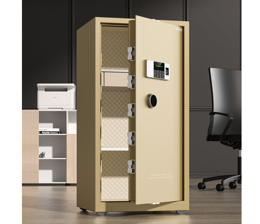得力/deli AE623-S 保密柜 家用办公指纹+密码保险箱大型保密箱全钢防盗保管柜 100cm金色 曜臻Pro系列