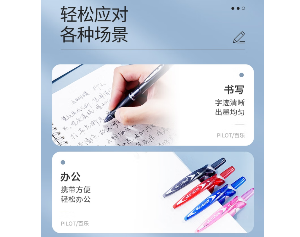 百乐/PILOT BPAB-15F 书写用笔类用具 按动圆珠笔 Acroball炫滑中油笔原子笔学生办公考试用笔BPAB-15F 0.7mm蓝色单支装