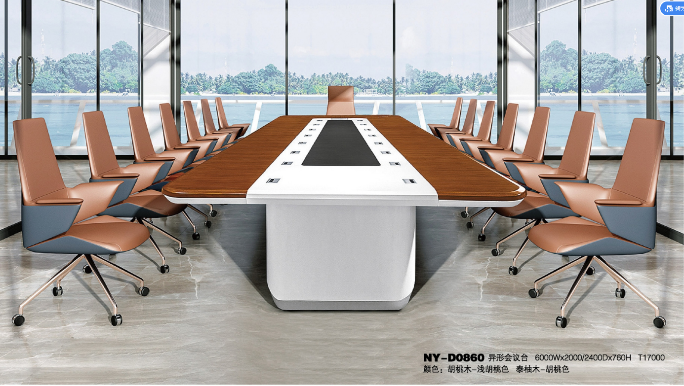 安格佳 SBNYD0860 会议桌 尺寸 6000*2000/2400*760 胶板大型会议桌 会议桌 会议台 升降屏显示器 异型会议台 现代长条桌子 白色+胡桃原木色1延米