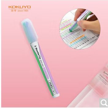 国誉/KOKUYO PM-L313-2-1P 书写用笔类用具 双色荧光笔Beetle Tip甲壳虫学生用考试复习重点标记笔 浅绿/浅紫1支