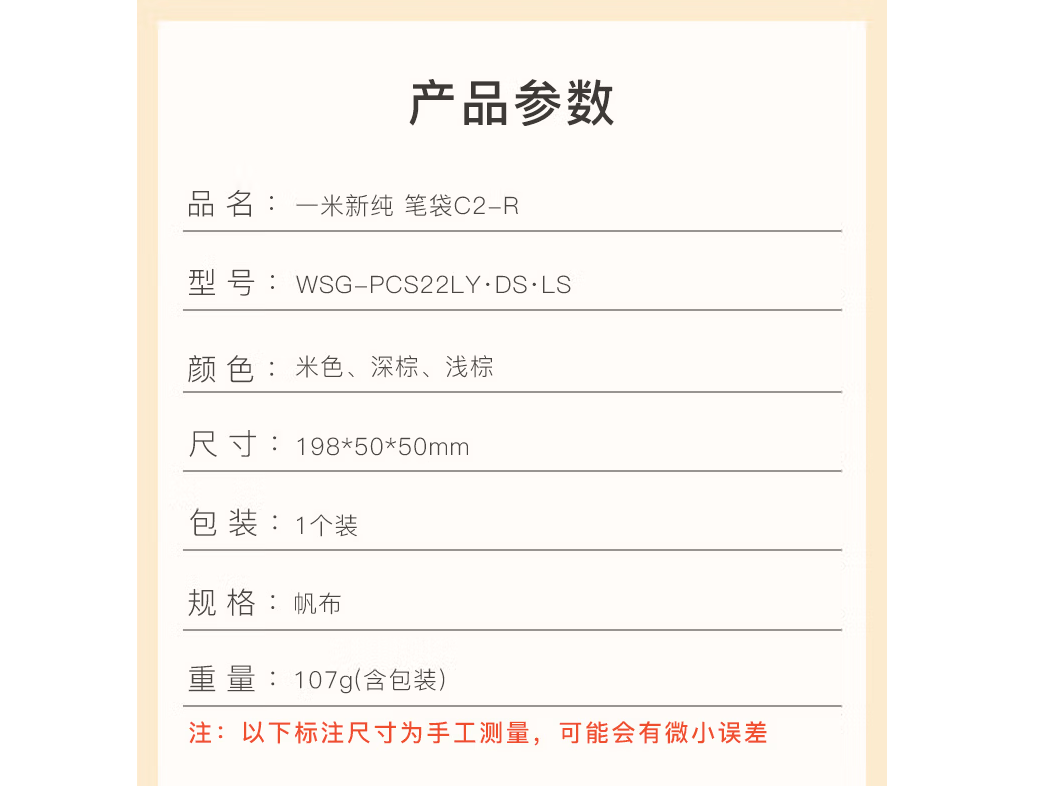 国誉/KOKUYO WSG-PCS22LY 收纳包 一米新纯文具笔袋大容量铅笔收纳盒 分区收纳 米色 1个装