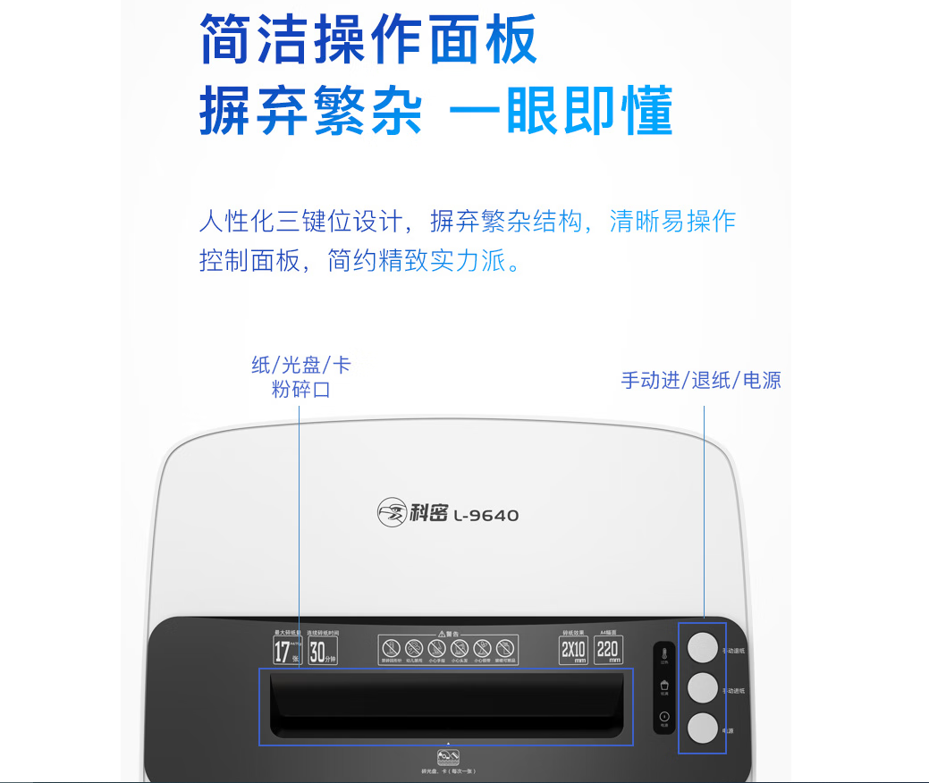 科密/Comet L-9640 碎纸机 单次17张 持续30分钟 5级保密办公商用碎纸机( 30L 可碎卡、光盘、订书针)comet