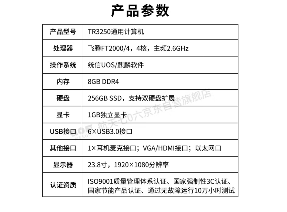 天玥/TINYUET TR3250 台式计算机 航天706 国产化一体机电脑(飞腾FT-20008G512G独显90W23.8英寸)银河麒麟V10试用版系统