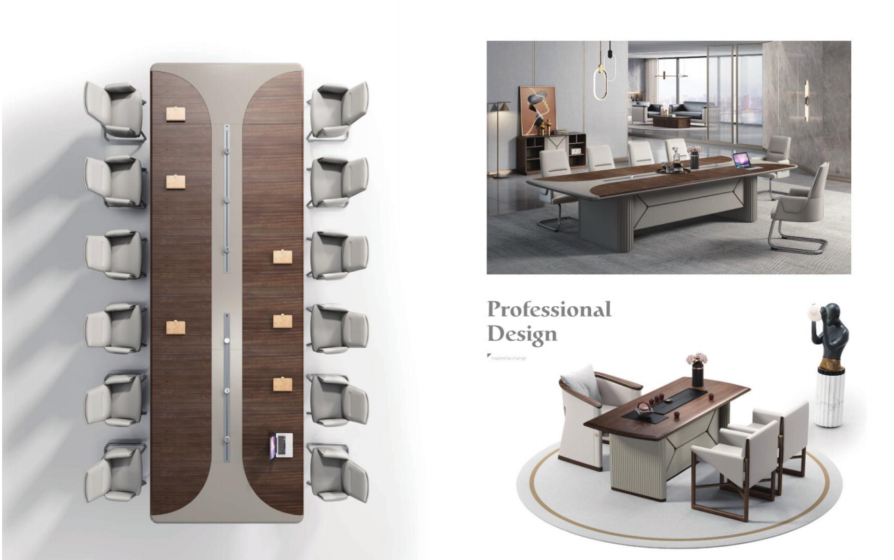 安格佳 KJKC- KMHT24 会议桌 尺寸 2400W*1200D*760 H 大型会议桌 会议桌 会议台 椭圆形会议台 长条桌 非洲直纹胡桃木 纹理清晰色泽舒适