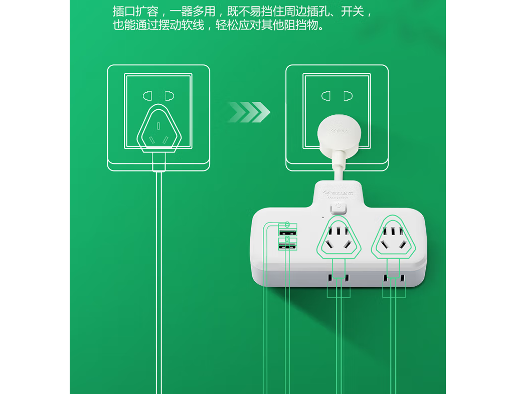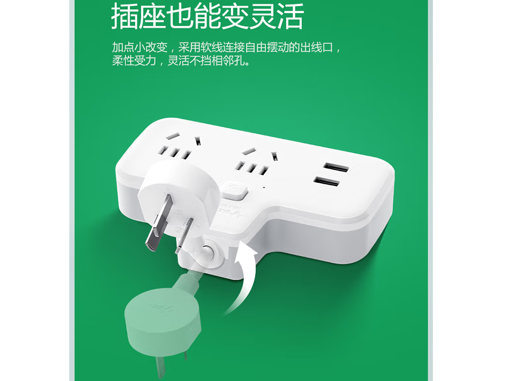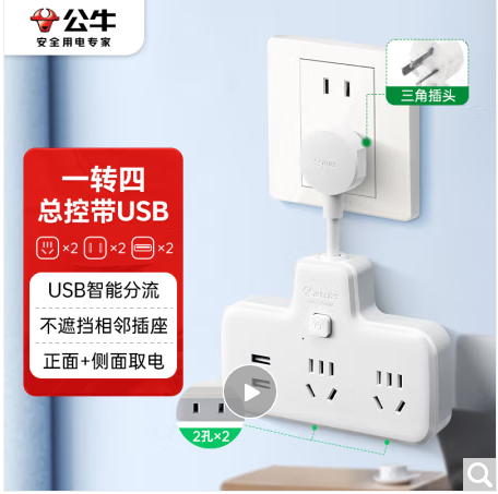 公牛/BULL GN-9722Q 插座 柔性USB一转多插座/插排/插/无线扩展插座 适用于卧室、厨房 总控一转四带USB