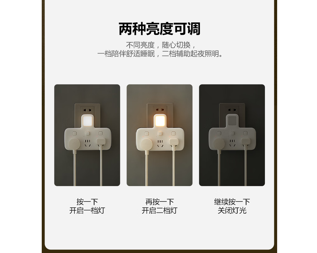 公牛/BULL GN-96033Y 插座 转换插头/品字形一转三插座/无线转换插座/电源转换器 适用于卧室厨房 3位分控带夜灯