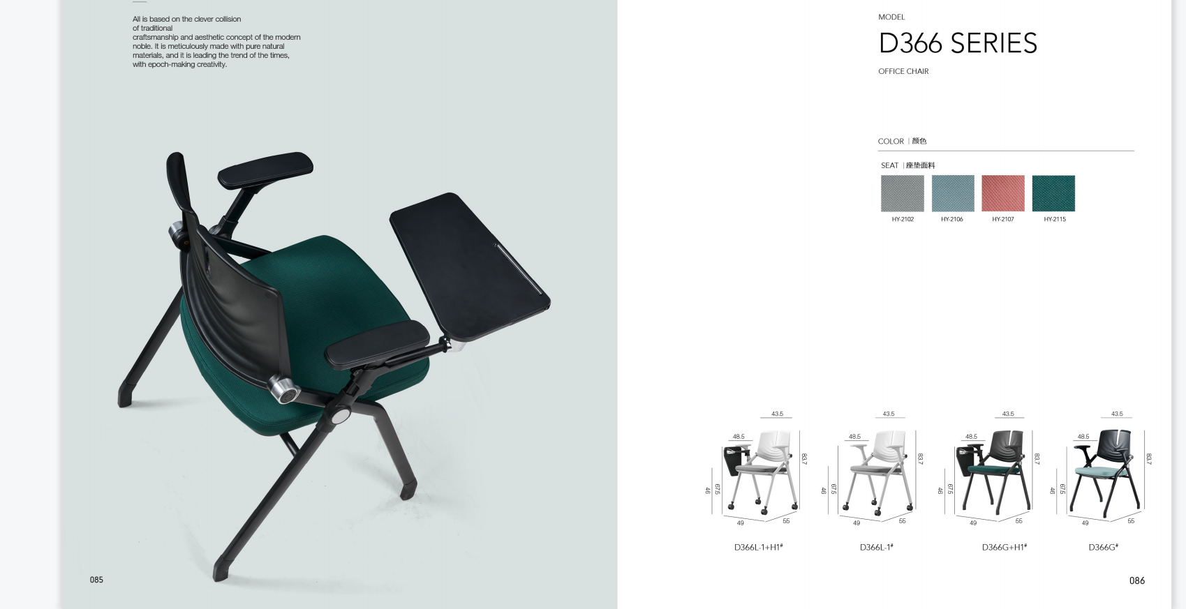 东港 D366 会议椅 (固定脚) +H1豪华板 一体会议椅.带写字板 折叠椅